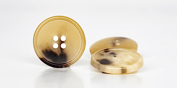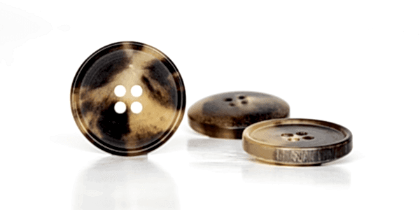 Bir baska doğal düğme grubuna giren boynuz düğmeler, gercek bufalo boynuzlarından elde edilmektedirler. Bufalo tamamiyle eti için tercih edilen bir hayvandır, bu nedenle boynuzları için kesilip yada öldürülmeleri söz konusu değildir.