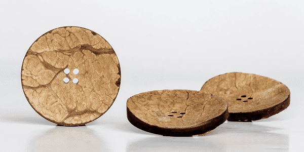 Naturel düğme kategorisinde olan Kokonat düğmenin ham maddesi Hindistan cevizi kabuğudur.