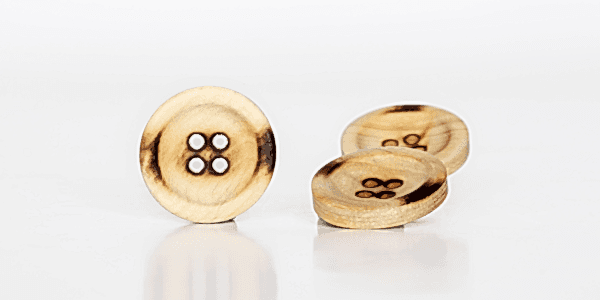 Naturel düğme kategorisinde olan Tahta düğme farklı ağaç türlerinden üretilmektedir. Bu düğme su bazlı boya ile boyanabilir olup üzerine her türlü arma,logo,desen çalışması yapılabilmektedir.